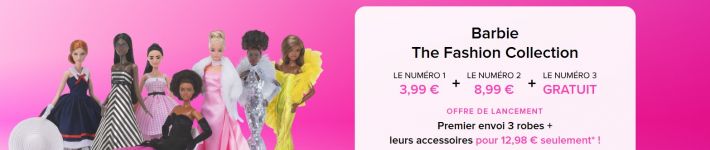 Découvrez la collection Barbie The Fashion Collection ! Revivez les robes et looks iconiques de Barbie pour son 65e anniversaire : tenues glamour des années 50 à aujourd'hui (Enchanted Evening, Dancing Doll Swirl, Solo in the Spotlight…).
